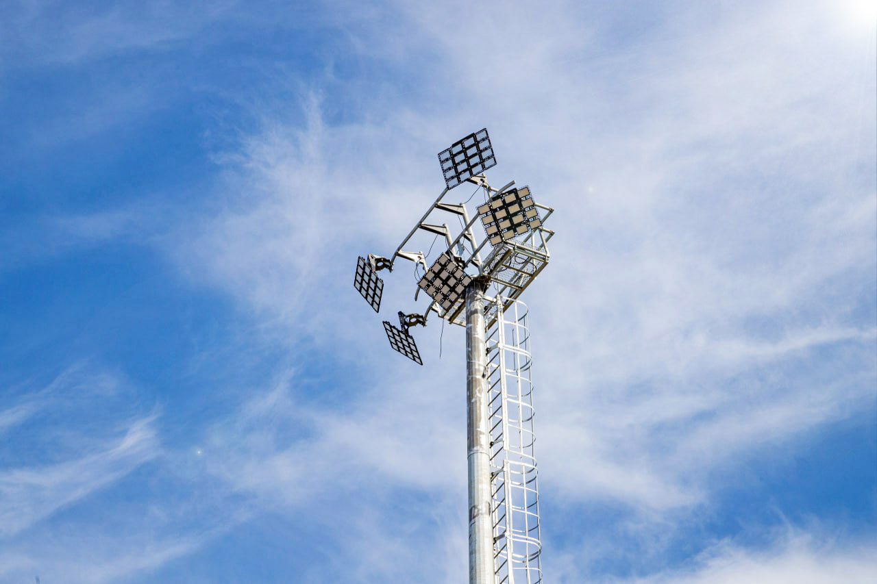 • Мощный световой поток: Прожекторы, установленные на вышках, обеспечивают яркий и интенсивный световой поток, необходимый для освещения больших пространств.